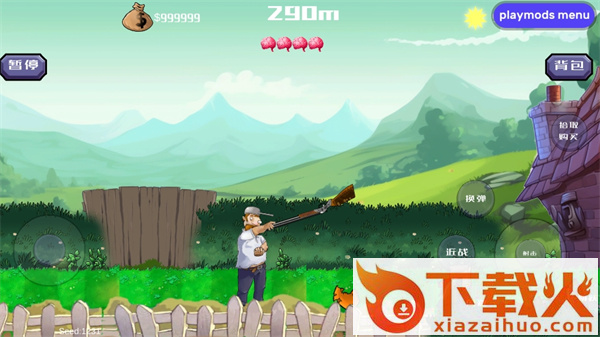 1、玩家在游戏里将扮演戴夫,手持喷子在后花园里亲手消灭来袭的僵尸们。