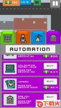 3、你可以使用游戏内置货币进行购买,点击屏幕手动赚钱,或者让自动化系统处理一切。
