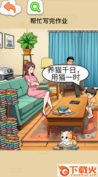 一款休闲益智游戏,游戏中你需要帮助小明在假期结束前完成落下的功课和作业,叫上爸妈一起帮忙吧,多尝试场景中的道具功能居然还有神秘角色可以帮助。