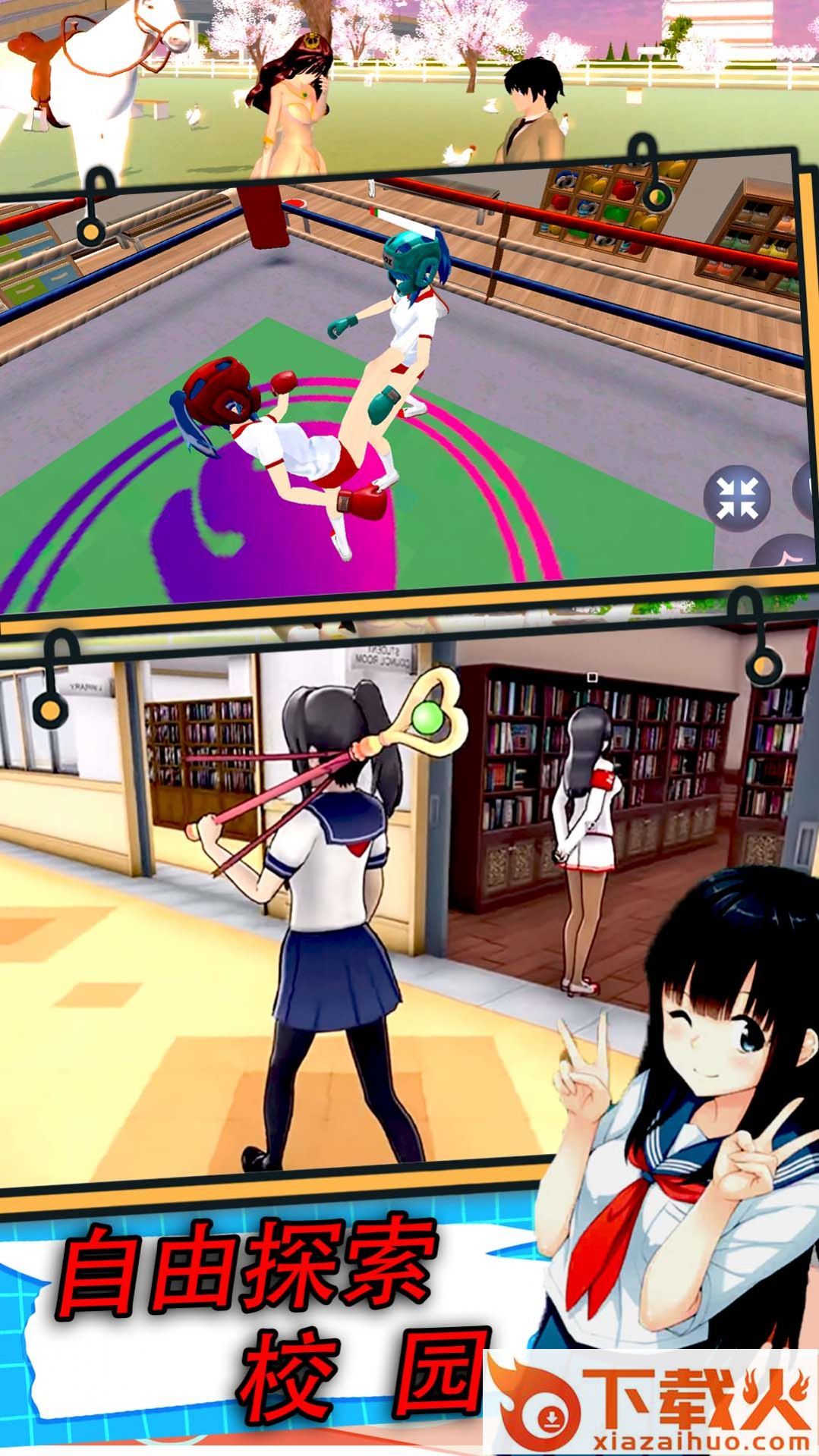 1、经典二次元校园风游戏,自由的探索校园,尝试不同的玩法。