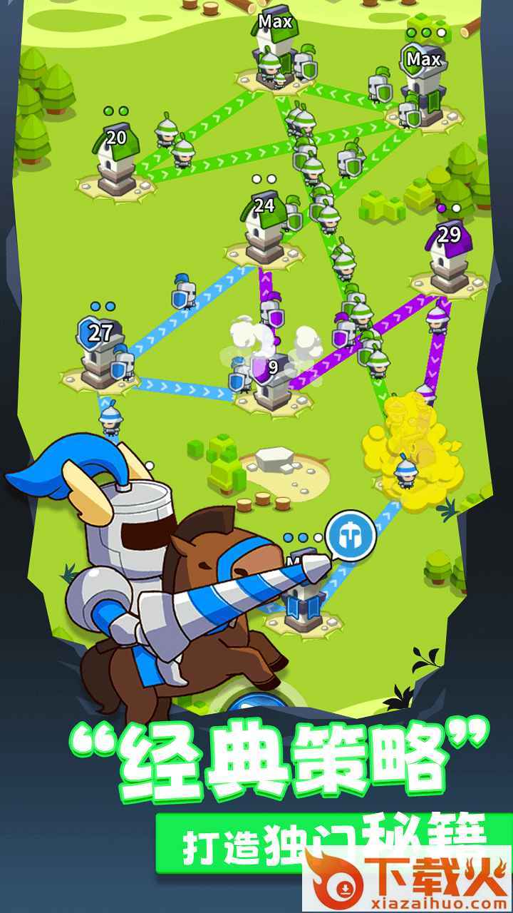领地冲突,一款休闲抢地盘小游戏,玩家开局一个小兵,通过花金币不断召集更多的士兵打造军团队伍,抢占其他玩家的地盘来扩充你的领地,攻占敌方城堡塔楼即可成功通关。