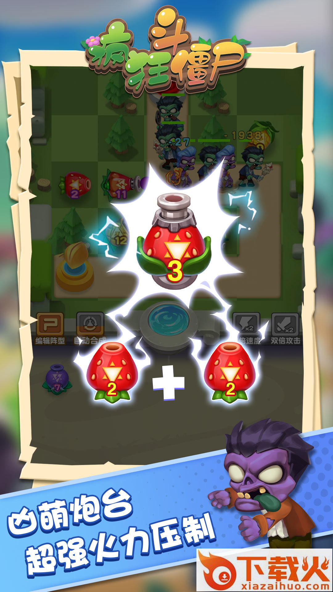 疯狂斗僵尸,一款趣味僵尸塔防小游戏。僵尸群体进攻,快来合成你的水果炮塔,疯狂发射射击僵尸,各个技能组合战斗,抵挡僵尸入侵,保卫我们的家园吧。...