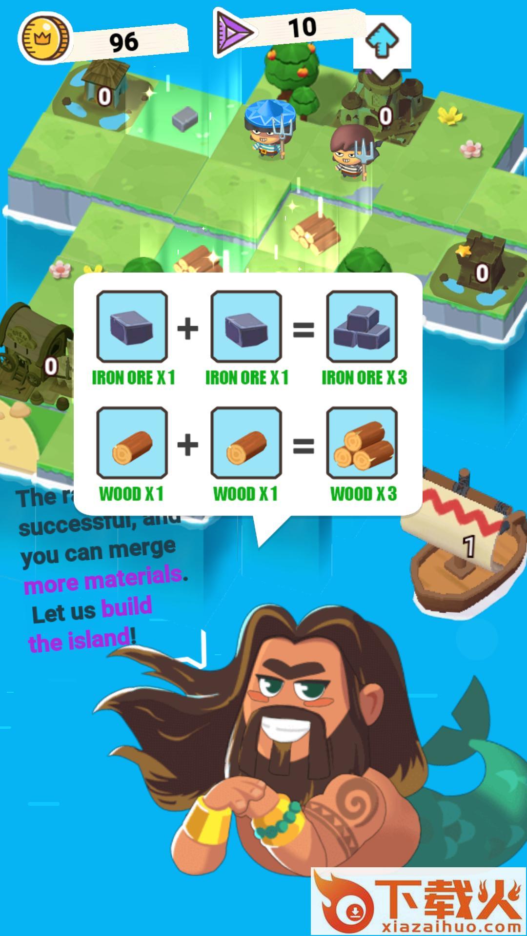 空闲岛合并是个卡通Q版形象的经营游戏,你作为海岛的管理者,可以将一个个小岛合并起来,建造海洋上的城市,游戏中需要发展和制造武器,提升经济的同时,保留舰队,对抗海盗和其他岛屿的敌人。