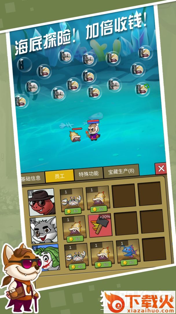 一款非常有趣和新鲜的动作设计手机游戏。剧情画面卡通可爱。人物是一群活泼的动物。在设定中,你将控制狐狸和狗,它们是巨大的动物农场中唯一保持清醒和理性的动物,而所有其他动物无一例外地陷入疯狂。其中,你需要用植物性食物作为弹药来对抗敌人,打败他们,保护动物农场!如果你喜欢可爱的动物元素,狐朋狗友会让你的闲暇时光变得快乐!