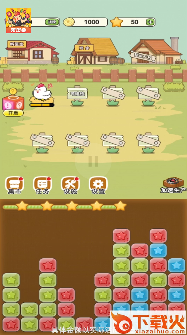 这次一定是爆鸡是个通过养鸡来赚钱的小游戏,消除星星收获更多的小鸡,让小鸡进行合成就能升级赚钱了,每天为你带来红包奖励,好玩又有收益,要相信你的小鸡们哦。