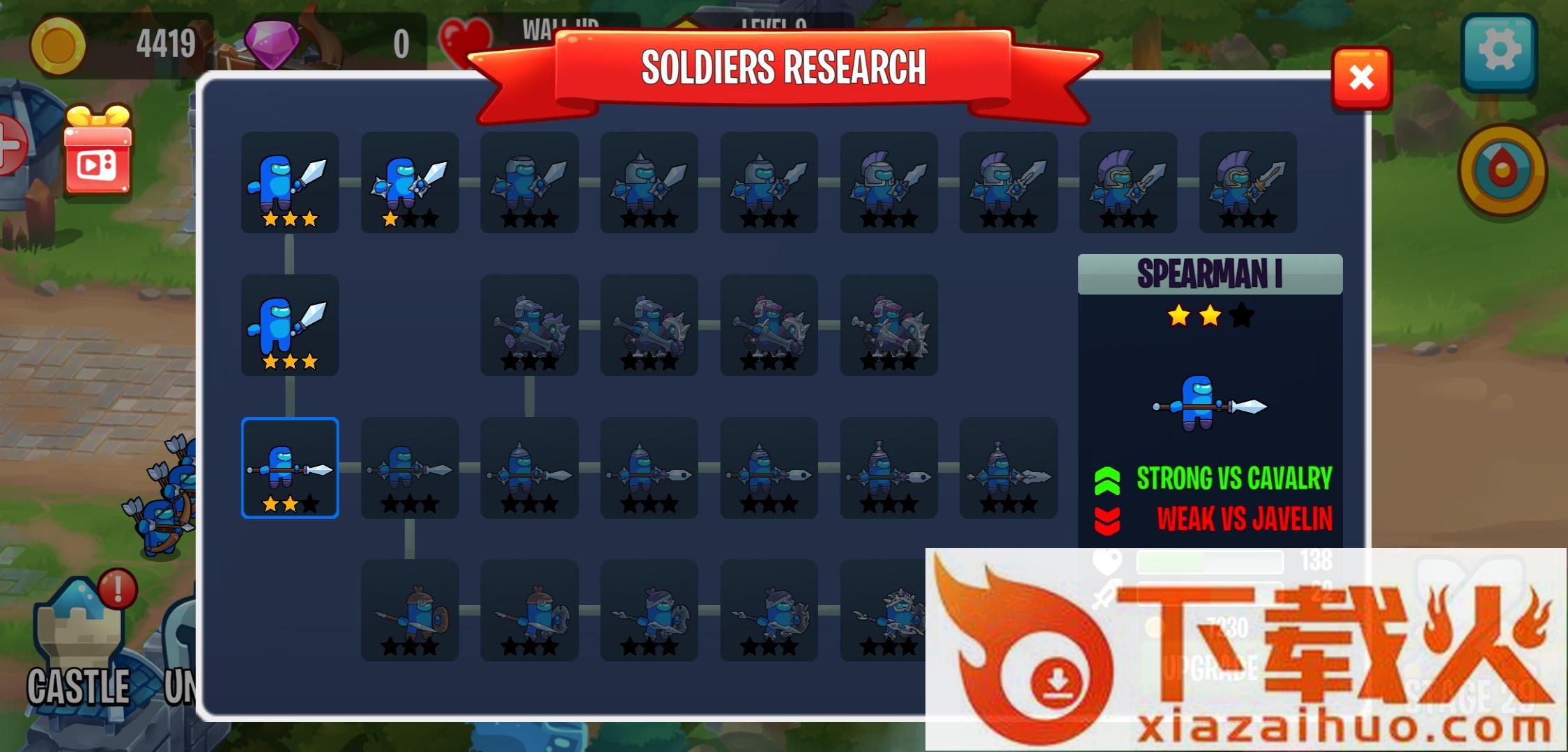 勇士防守,卡通塔防战争游戏。开局雇佣更多战士组建军队,策略布阵挑战敌方,争取摧毁敌方城楼城堡,吞并敌方城池,获取最后的胜利。