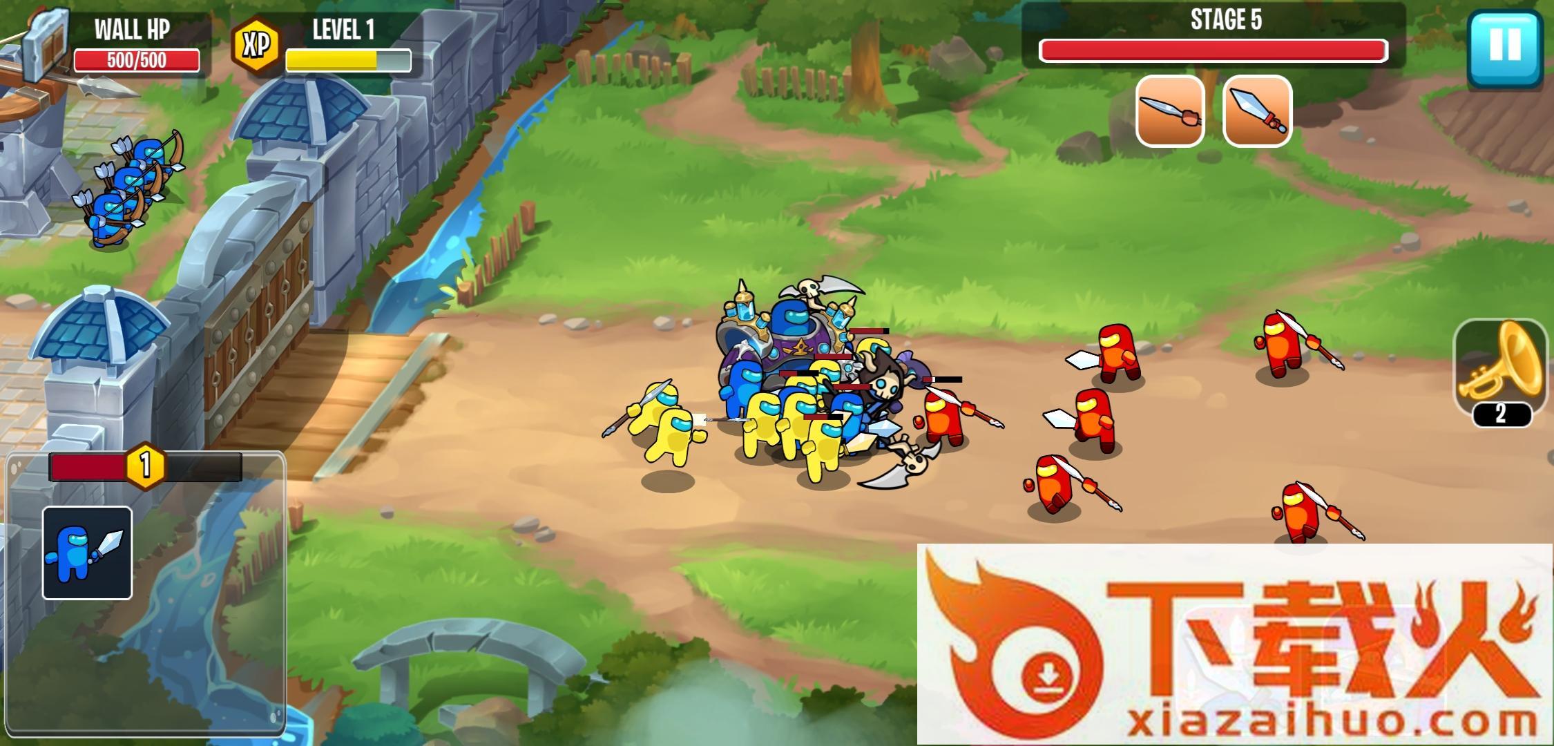 每消灭一个敌人就可以获得金币,召唤新的士兵加入战斗。