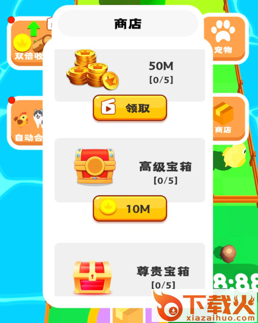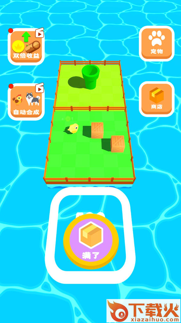 我的宠物岛是一款休闲解压模拟经营合成类手游,游戏十分休闲开局会给到盲盒式的箱子可以打开,打开后获得宠物小鸡,通过打开箱子获取宠物,宠物和宠物之间可以合成为更高级的宠物提高金币收益,金币可在商城内购买更高级的宠物,游戏内场景也可以通过收集木材来创建新的场景,木材通过场景提供的树木来获得,获得树木根据时间来获得相对应的数量来开启下个场景。