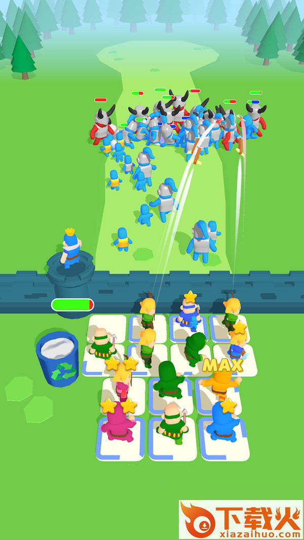 趣味休闲策略合并对战冒险游戏,在游戏中,玩家需要去进行一场刺激的兵团战斗,游戏里面玩家将要去通过合并的方式来提升你的战士的战斗力,击败向你袭来的敌人。