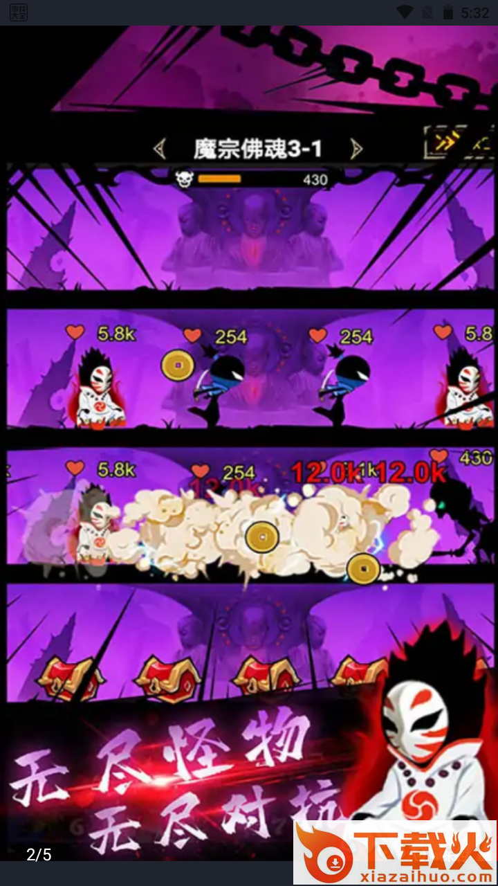 1、超爽的闯关系统,游戏中打怪接近于刷怪,只要你有足够多的忍者,那么就可以体验超爽的闯关系统。