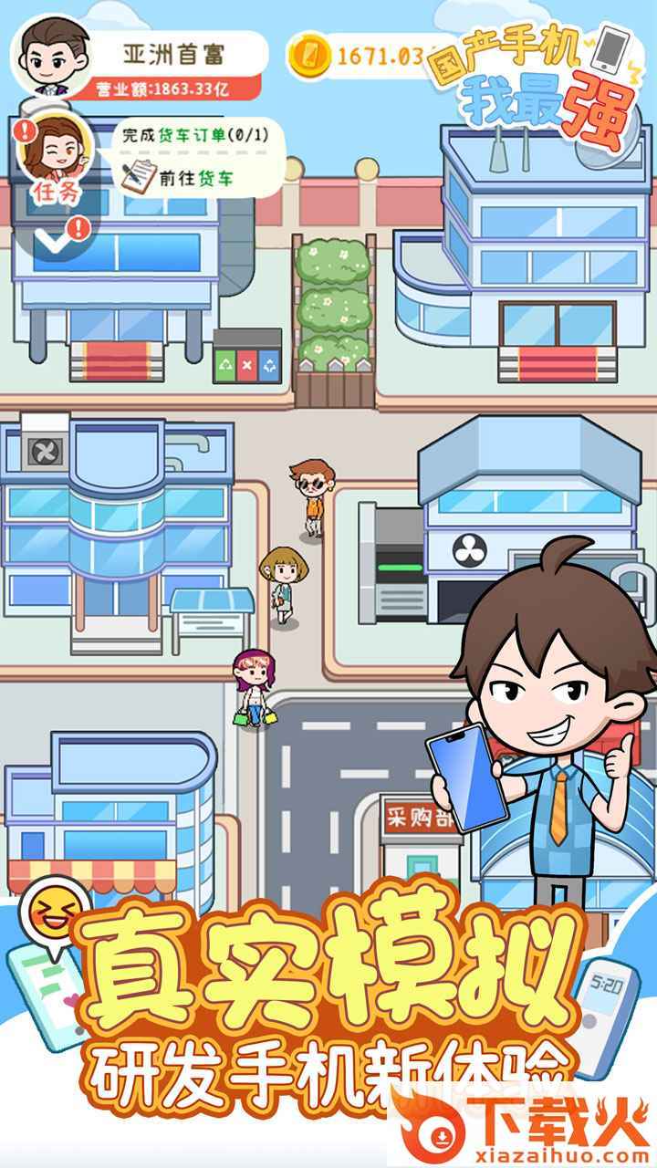 国产手机我最强这款游戏也是最近比较流行火爆的模拟经营类型的游戏,游戏当中的各种画风也是比较的卡通有趣,你可以经营着一家手机工厂,每天都要完成很多不同的手机制作任务,解锁一些新的设备来完成任务,还要招聘很多的工人。