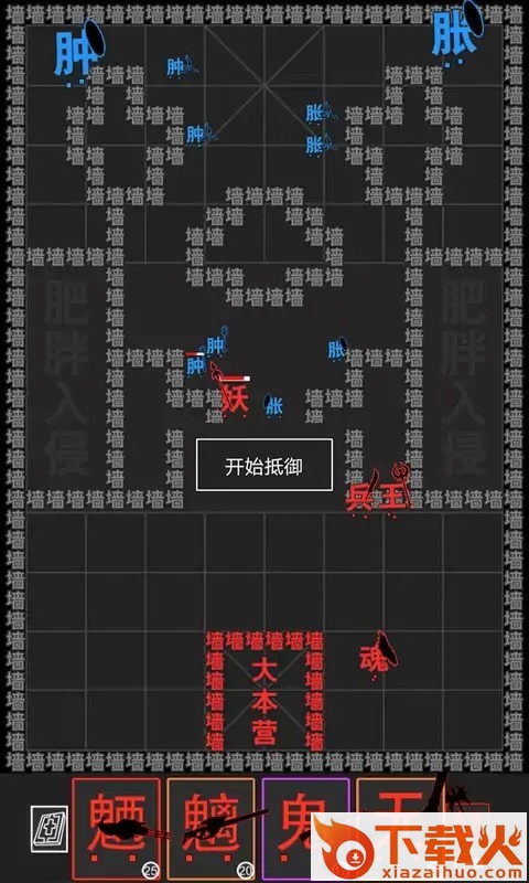 脑洞大开的中国风汉字策略小游戏。每一个文字代表一个相应的士兵。玩家可以升级兵营、粮草供给,从而提高战斗力。当敌方来袭,玩家需要根据战场形势来部署防御部队。