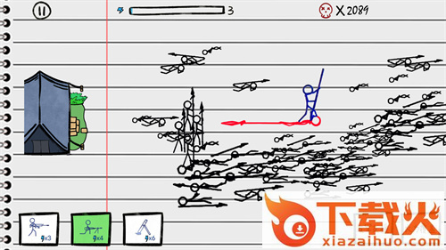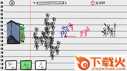 有趣、有挑战性且容易入迷的火柴人益智休闲即时战略游戏。你可以控制你的军队组编或出动各个战斗单位。敌人会从不同的方向攻击我们,你需要灵活安排士兵上营,面对不同兵种,你需要派克制的角色去战斗,非常考验玩家的部署的能力。