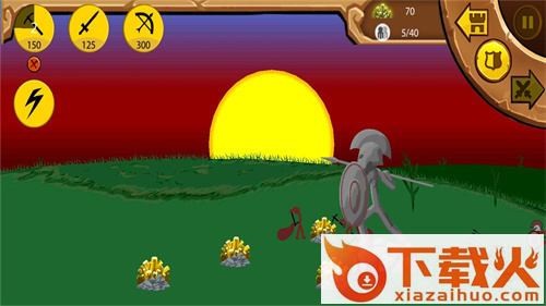 第五关:剑士反击,4名矿工,其余全养剑士,此时剑士头盔满级,可压制对方