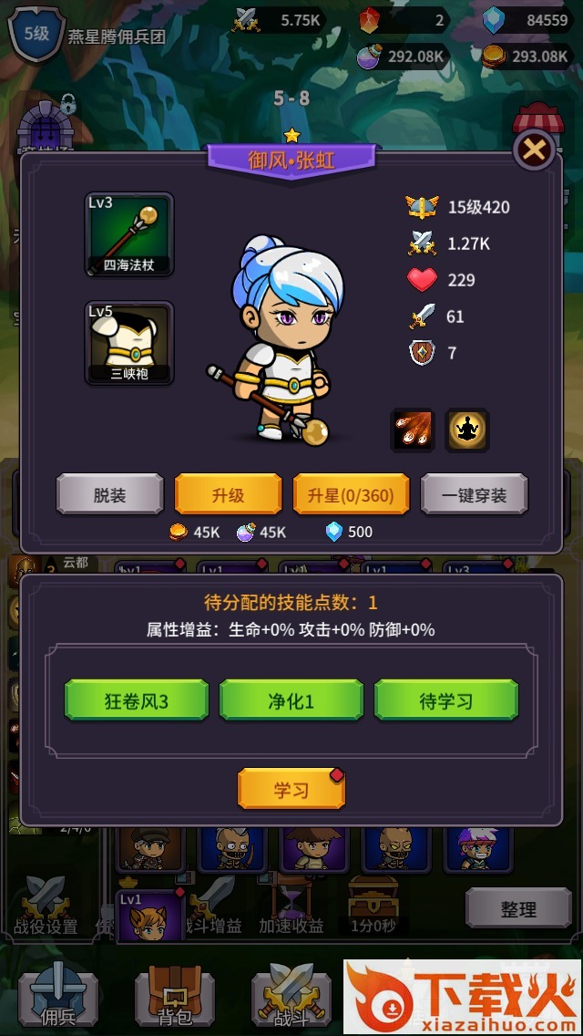 4、 可用通关所获得的各种奖励升级角色的武力值,技能,装备。