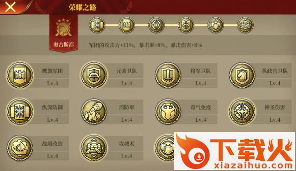 精锐部队:优先升满罗马兵种,再把专属兵种全升二级。