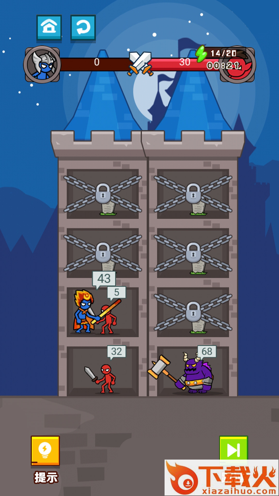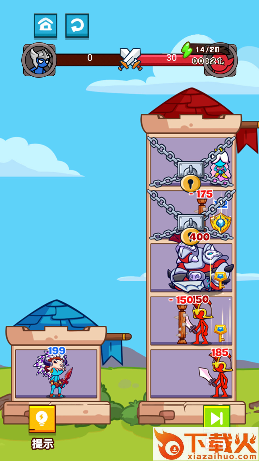 3、你可以控制火柴人勇士来完成爬塔挑战,自由规划自己的行动路线。