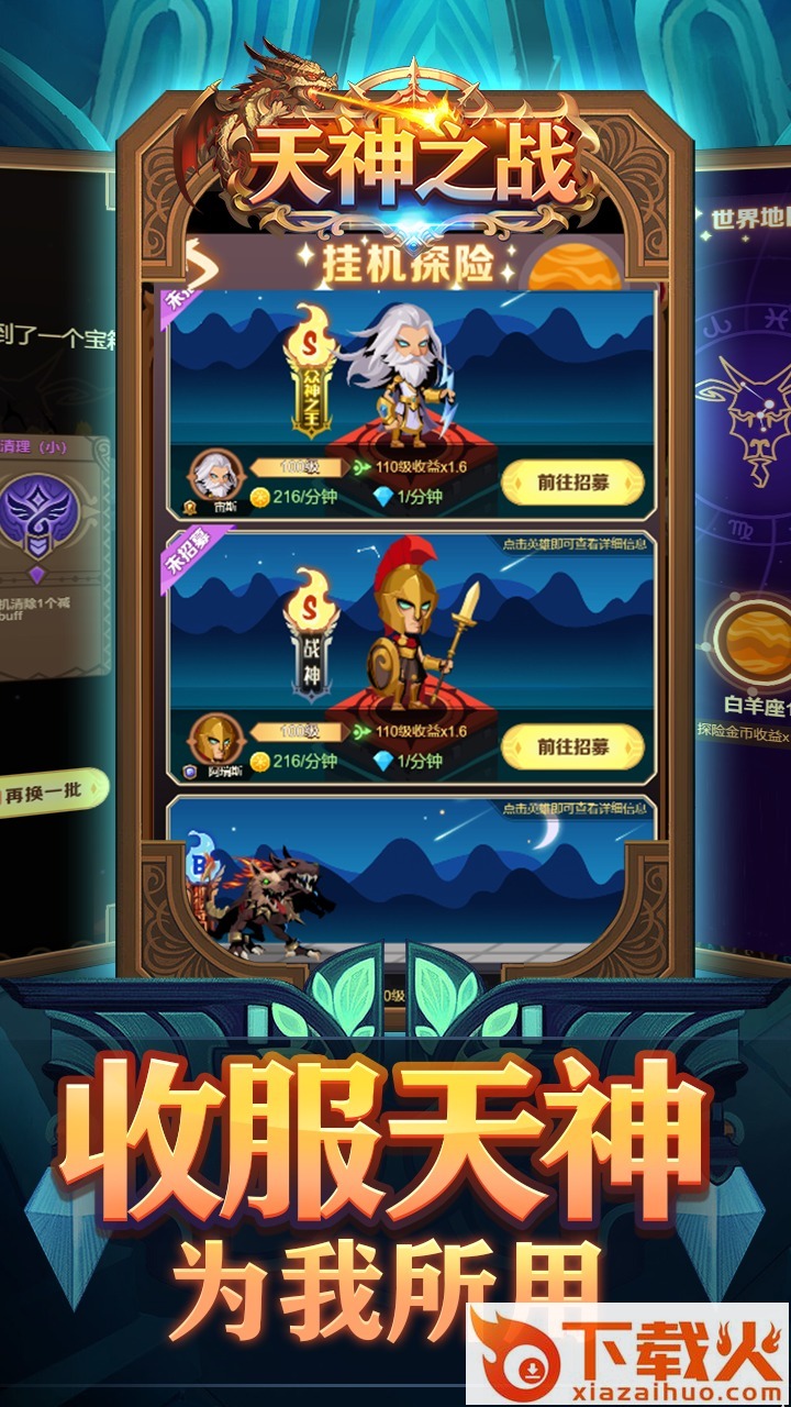 天神之战游戏以十二星座作为主题,让星座天神来为你战斗,独特的冒险旅程,不仅充满着挑战,也需要超高的智慧和勇气,对抗邪恶的美杜莎,拯救奥林匹亚吧。...