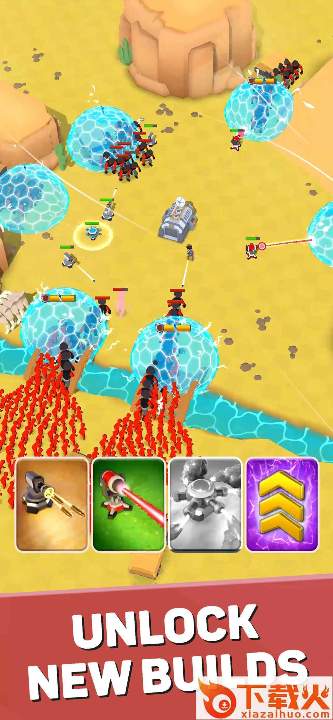 我的集结军队游戏中需要合并您的单位以变得更强大并击败攻击者。发现新兵加入你的队伍并提高你的火力。你将如何组织你的部队?手枪、步枪、迷你枪、轰炸机、手榴弹、火箭发射器、狙击手,它们都可以帮助你对抗海浪。...