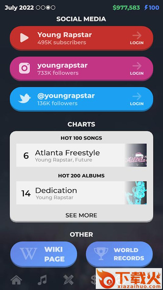 说唱歌手模拟器手游是一款独特的模拟休闲游戏,在说唱歌手模拟器中玩家能够创作组合自己的歌曲并且结交其他说唱歌手,成为榜单第一的说唱巨星吧!