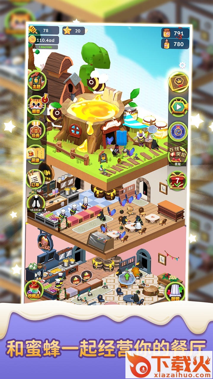 一个拥有甜品店的模拟游戏,与它们一起开始甜点故事,与可爱的蜜蜂一起享受闲置的蜜蜂游戏,打造森林中最棒的甜品店!