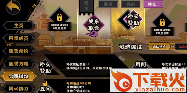 触发条件: 必须是盟友且他比你强的多,天下只剩下你和盟友两国即可触发