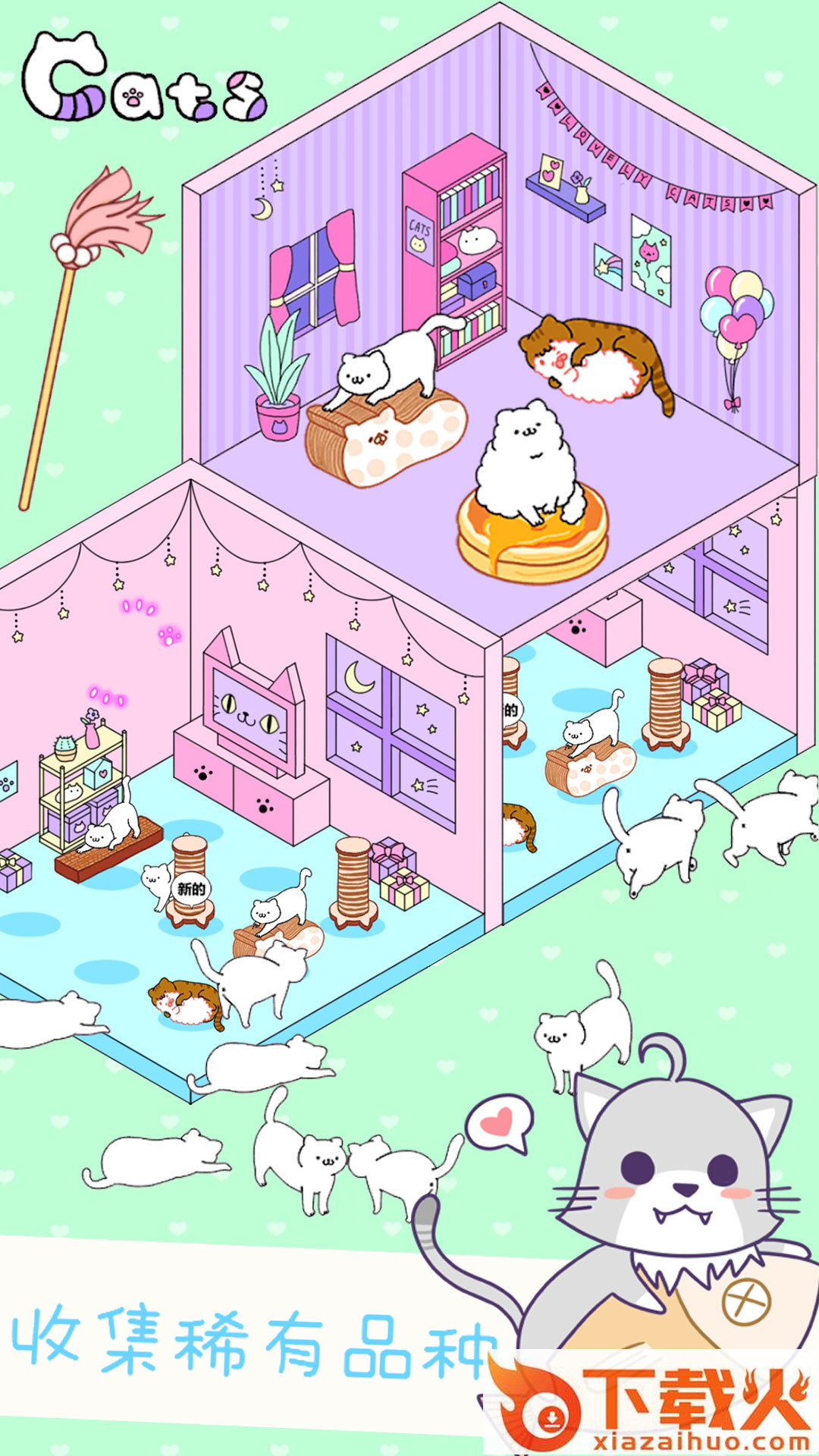 迷你萌宠世界游戏中可以养成小猫咪,为它们建造住宿用的小房子,每天收集金币来进行改建,添置家具,还能不断遇见新的品种呢,稀有的猫咪等你来收集。...