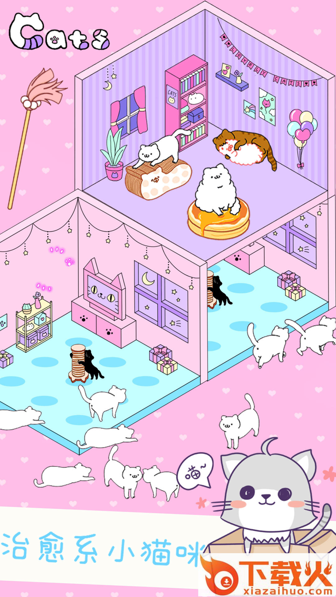 各种各样的猫咪为你展现,选择喜欢的开启你的育成之旅,每天陪着它一起玩耍,同时为它讲故事,帮助猫咪升级,只有升级之后才可以解锁出更多有趣的故事,而且你还可以为猫咪打扮和装饰房间,让猫咪快乐的生活,你也能每天撸猫哦。