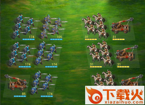 策略性战斗,提供战斗前的布阵设置。只要有一个部队有士兵,即可进入战斗。若全部部队都为空,则不允许进入战斗。