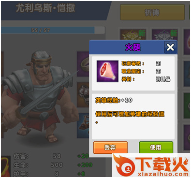 英雄升级需要肉类道具。联网对战随机掉落肉,荣誉越高,肉的品质越高。