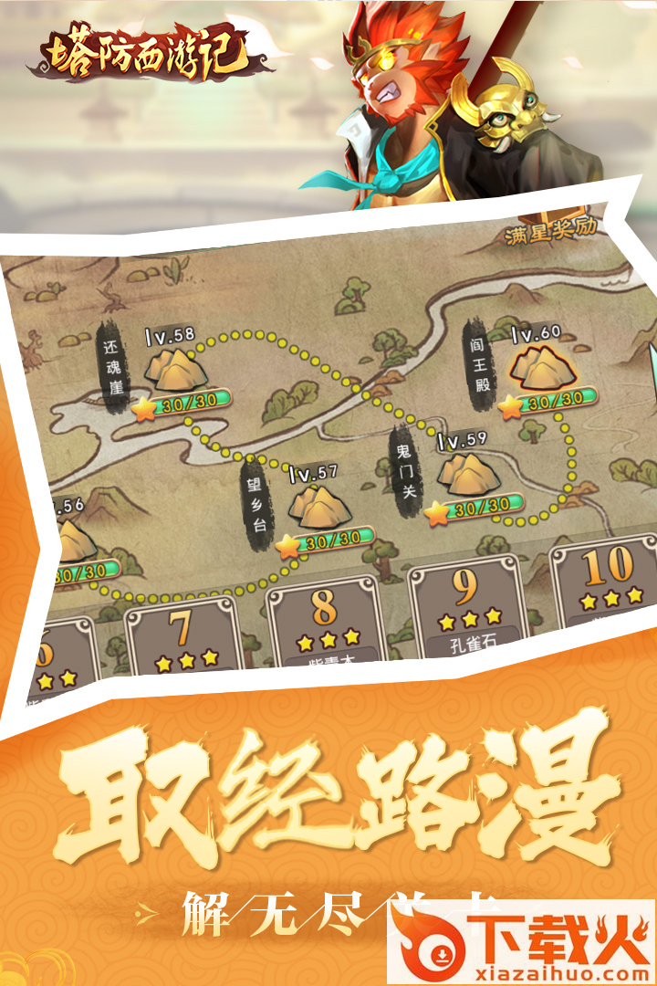 塔防西游记――全新Q版西游题材塔防策略闯关游戏,重新定义休闲塔防!独创趣味西游故事副本,给玩家提供全新西游体验,精心设计,300多张精美地图等你来战。 秘境降魔,炼丹突破,天庭寻宝,玩法丰富,还有大圣、嫦娥等多种神将仙将待你收集。四大职业,百种仙术,技能搭配益智烧脑,让你的西游更加炫酷!超多福利,财神送宝,0氪也能获得激爽体验!更融入智能社交系统,入仙盟,战群雄,挂机刷怪撩妹两不误。