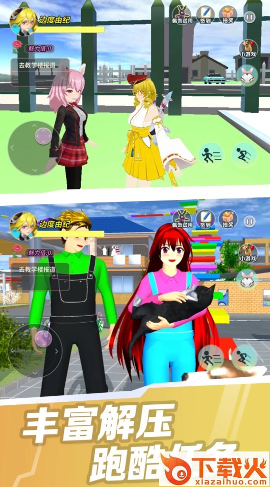 1、自由探索校园,完成各种挑战,解锁更多有趣的内容;