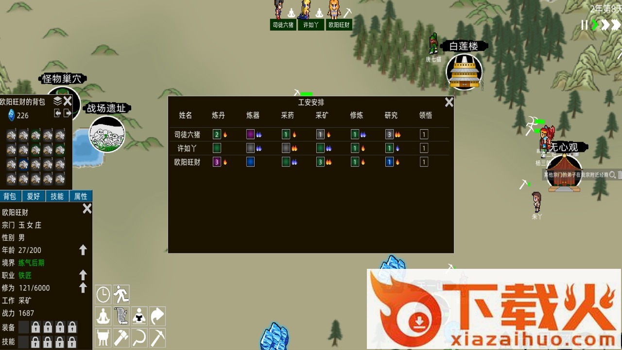 一个沙盒模拟类的修仙游戏,玩家在上帝视角指挥宗门内的弟子进行炼丹、炼器、交易、采药、采矿、战斗、修炼、研究或学习功法、战斗、招募弟子等等。目前有30多个职业、30多种功法、40多种装备词条,随意搭配,打造出属于你的最强流派。