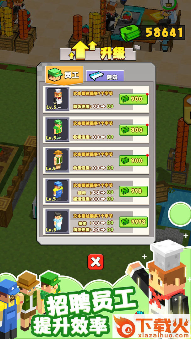 3、分别是升级制作速度以及解锁更多新的区域来放置用餐区,还有就是食物的种类。