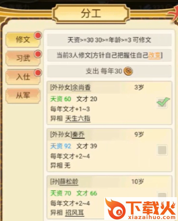 2、 经营基业 ― 士农工商如何侧重?族内人士该习文习武?没错,这个还是得由你来拍板!家族的产业经营和每个族内人士的仕途走向都可以由你安排。