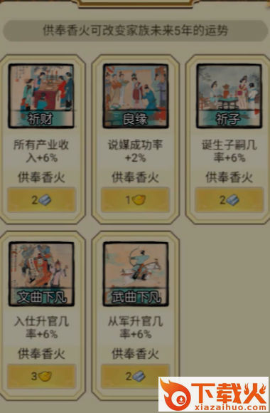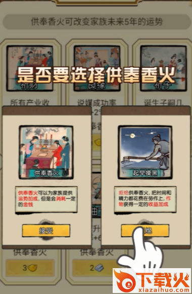 1、 处理家事 ― 大至成年家人的仕途和生死,小至孩童抓周和考试,家族内发生着非常多样的随机事件要你着手处理,而你的每个选择也会影响家族的走向。