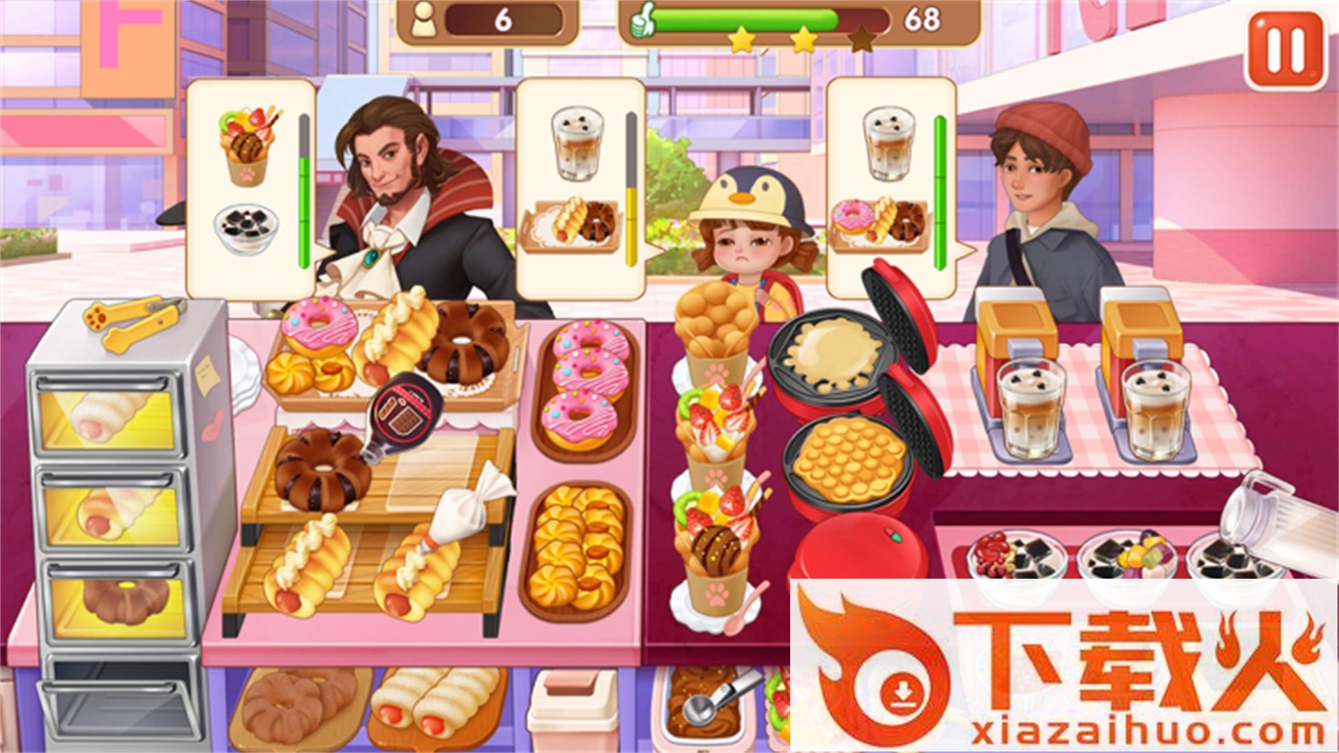 2、绚丽多彩的游戏画风,可以随意烹饪各种美食,吸引顾客;