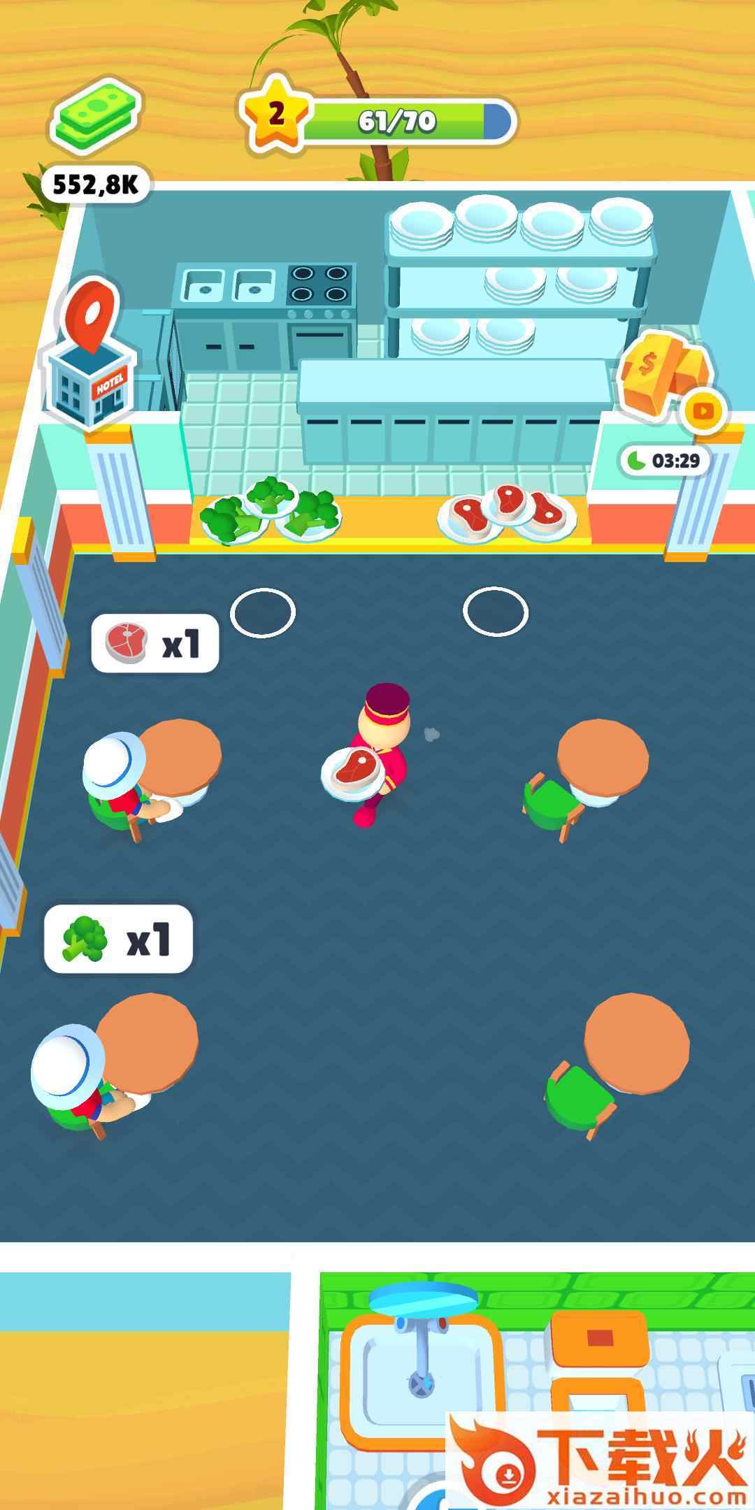 1、每天获得的营业收入可以用来解锁并扩张酒店的规模,增大每日的客流量。