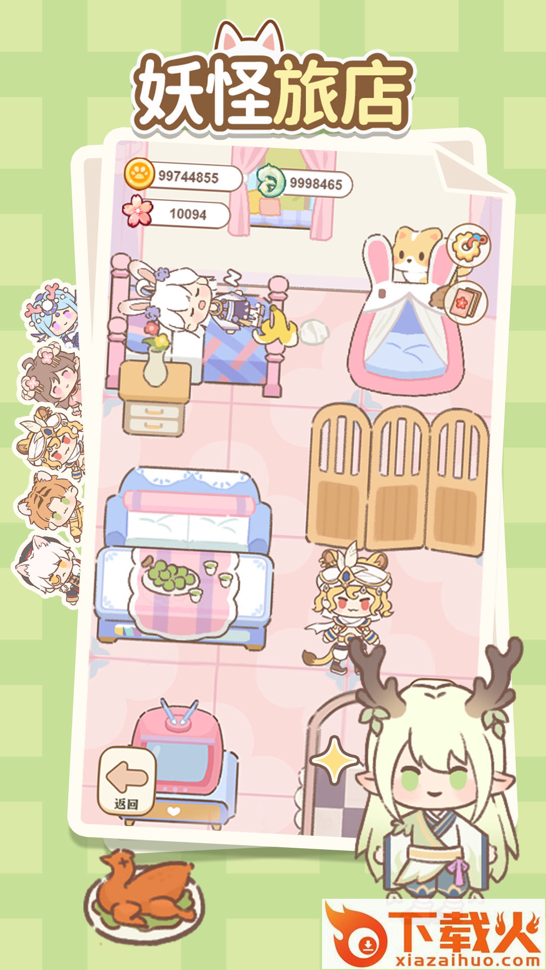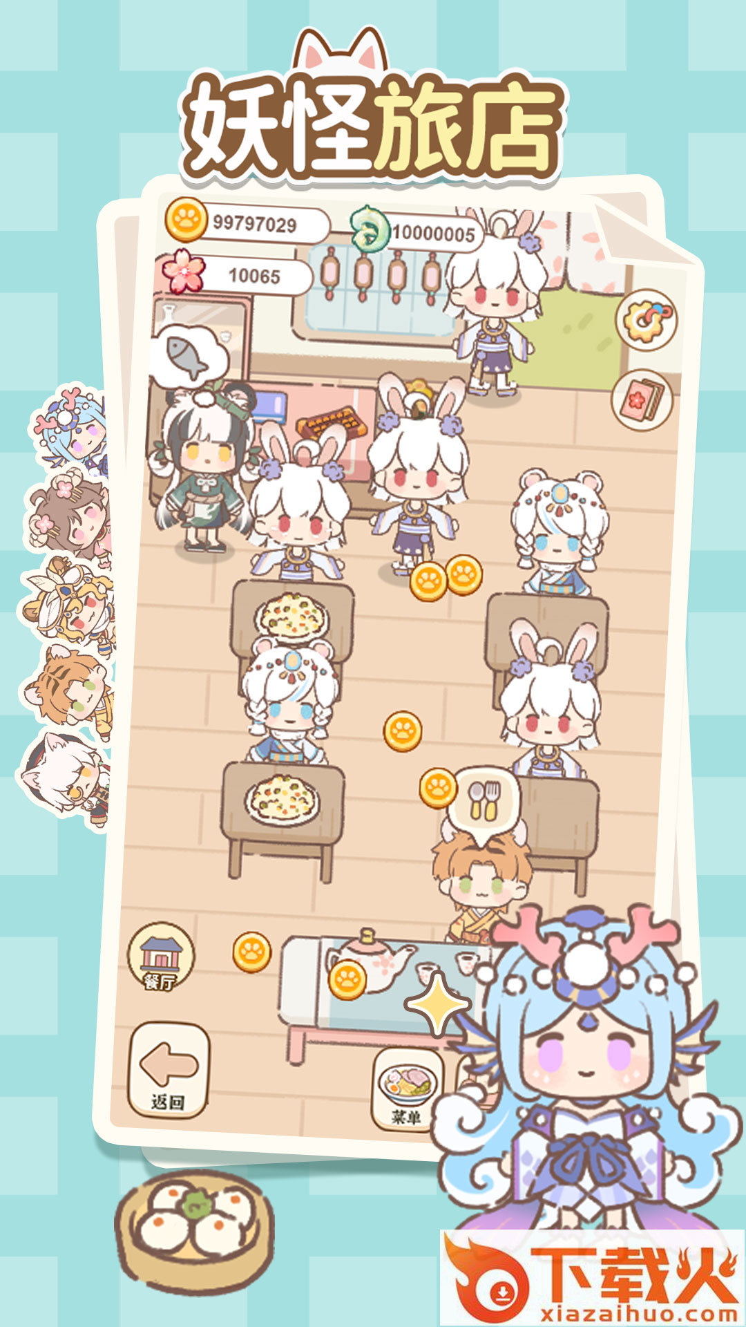 充满少女心的模拟经营游戏。游戏以妖怪世界为背景,你将在游戏中扮演一名与精灵签订契约的客栈老板娘,努力帮他们经营客栈,从职场新手逐渐变成老手的过程。