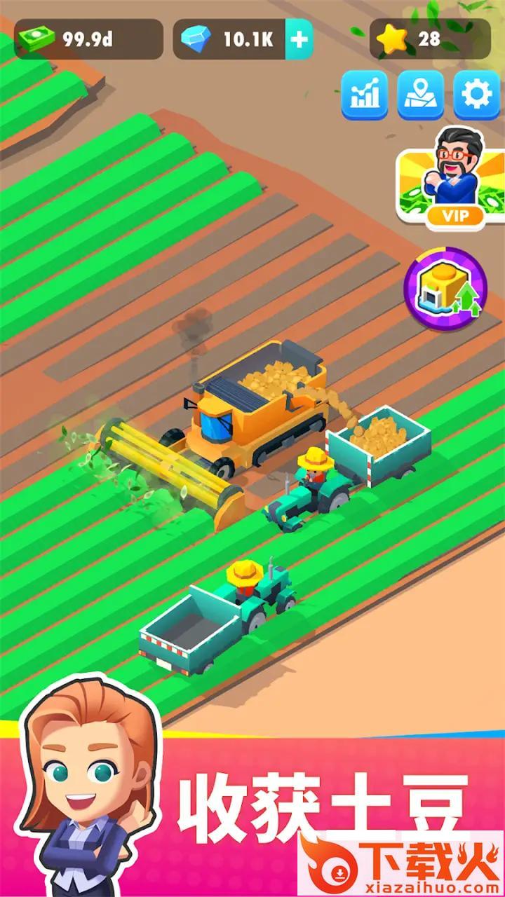 欢迎来到您的土豆工厂,在这里您将继承并经营叔叔的土豆工厂,将它发展成为世界第一的公司,为全球客户提供土豆产品!管理土豆田您拥有最高效的土豆收割机,提升他们的效率以更快地收获!