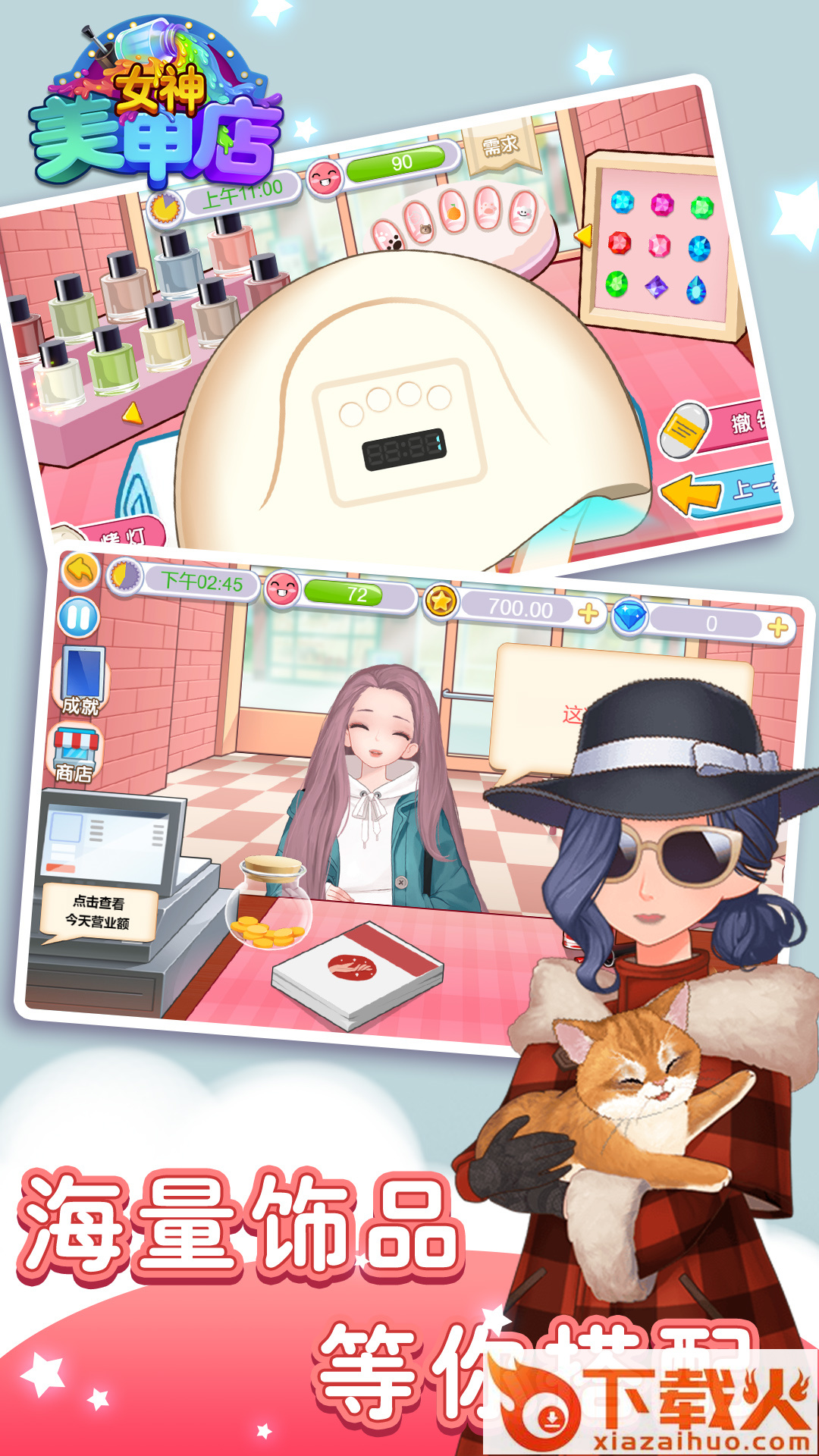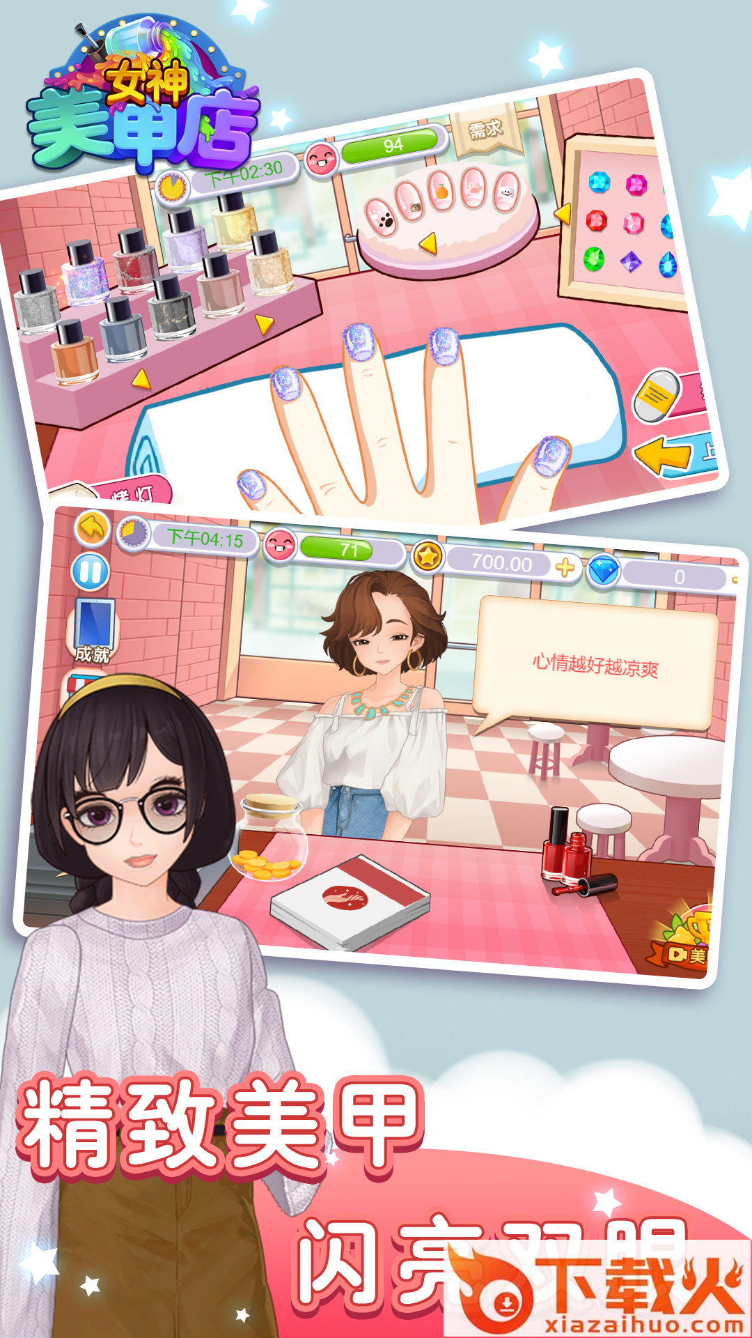 模拟经营类的精品游戏,为顾客做出闪亮的美甲,小心坏心情的顾客,获得更多资金扩大美甲规模。