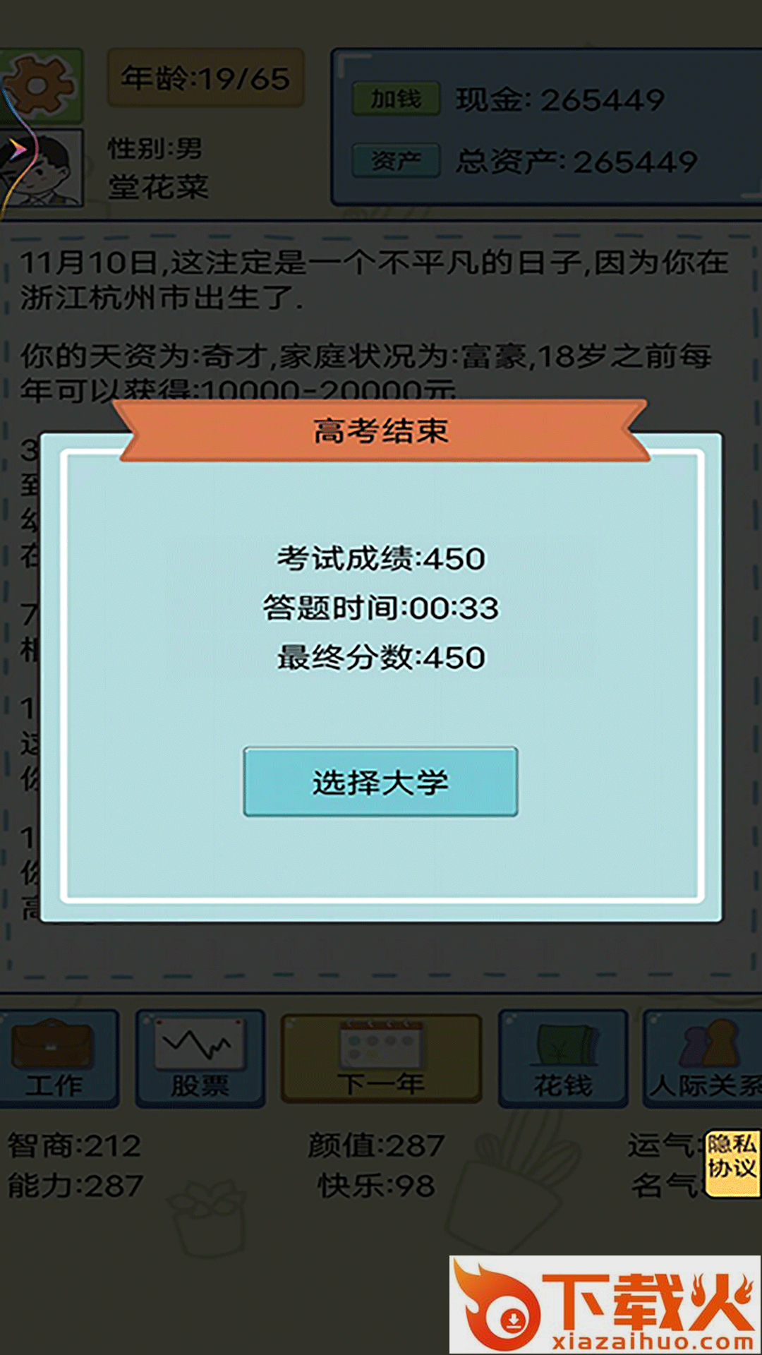 假如你是大富豪,抖音趣味人生模拟游戏。玩家将在这里重启人生,选择出身身世家庭,学习上学,提高智力魅力等属性,做出你的人生抉择,体验不一样的人生。