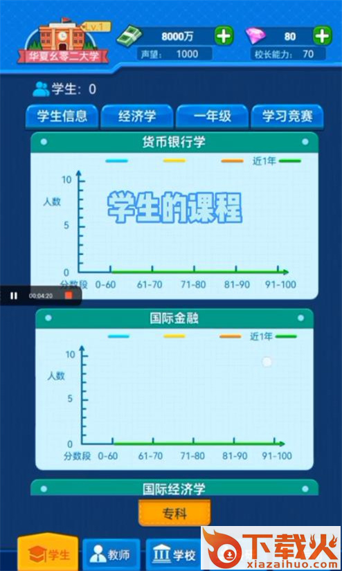 6、玩家自定义录取分数线和学费,分数越高入学学生能力越强,而且,学费高一点的话,前期学校发展也有足够的资金;