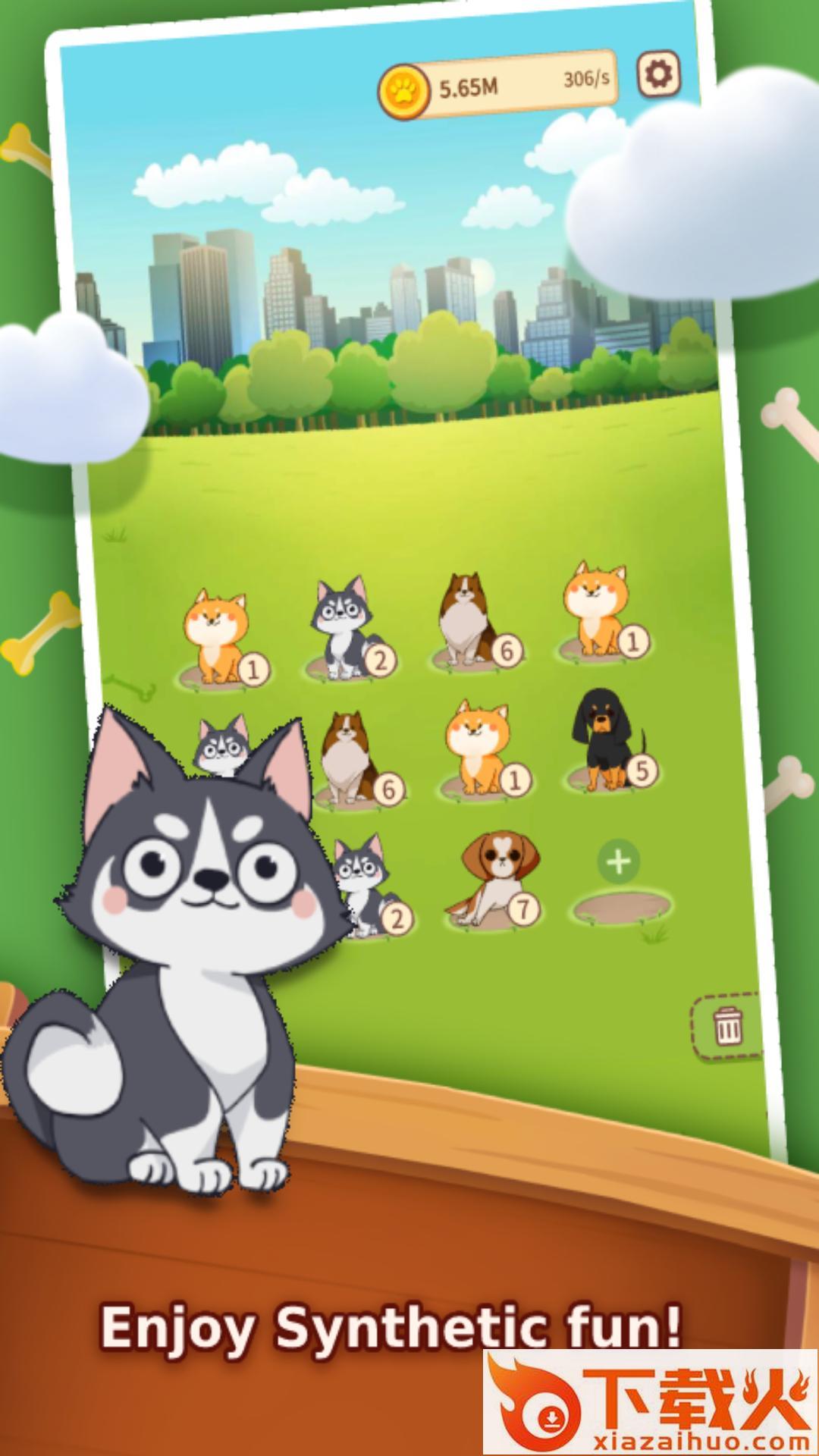 玩家在游戏中可以见到各种各样狗狗角色,两只相同品种的小狗可以合并升级,提升小狗的等级。