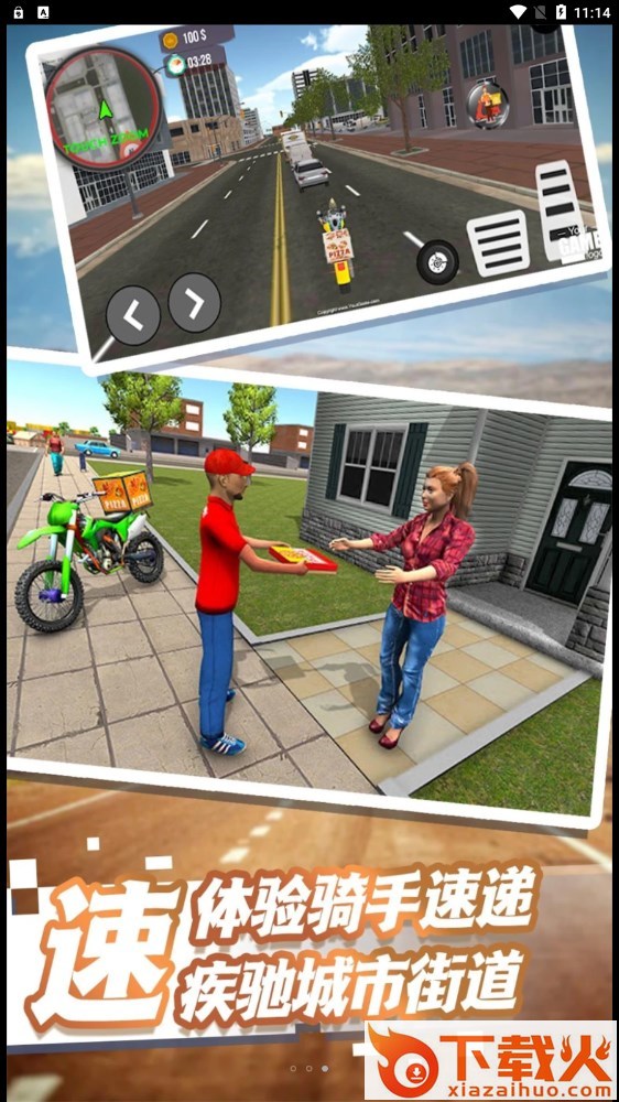 1、欢乐无比的驾驶模拟游戏,扮演外卖小哥,迅速送餐;
