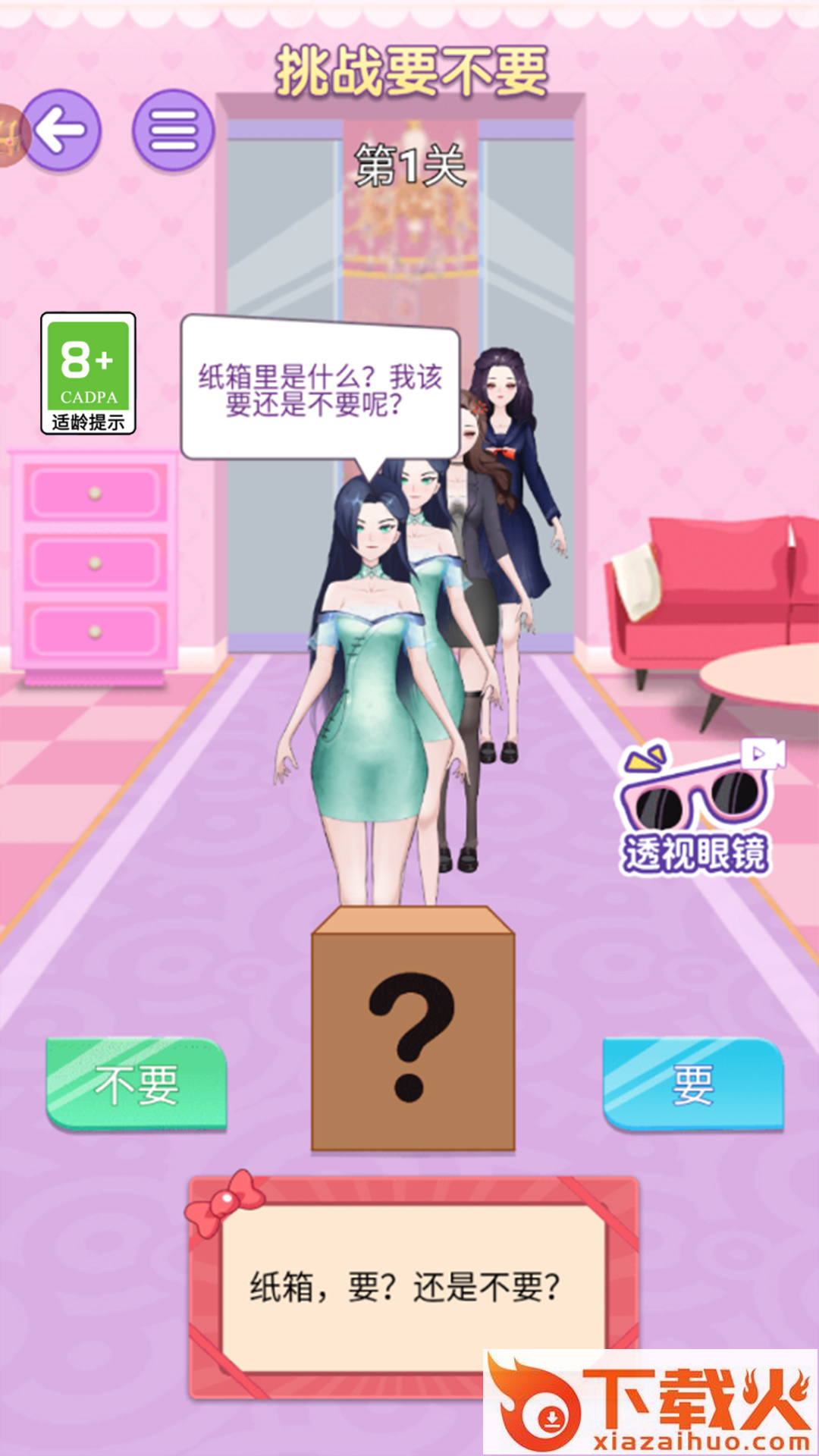 选秀小姐姐,一款益智休闲的养成游戏,通过一系列步骤使小姐姐变美,比如刮腿毛,美白,做发型等。游戏中还有整蛊小环节,需要猜猜看当前展示的纸箱能开出什么好道具。