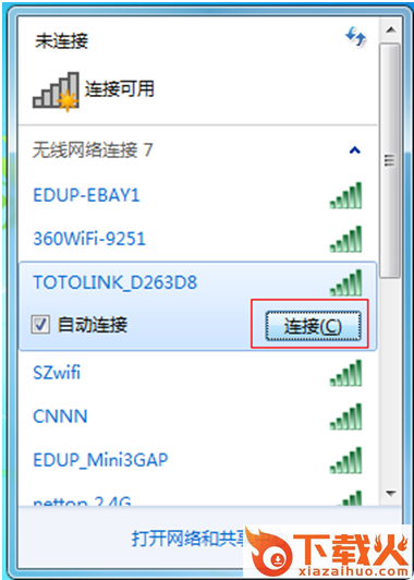 打开网络连接对话框,输入网络密钥,即可连接无线信号上网。
