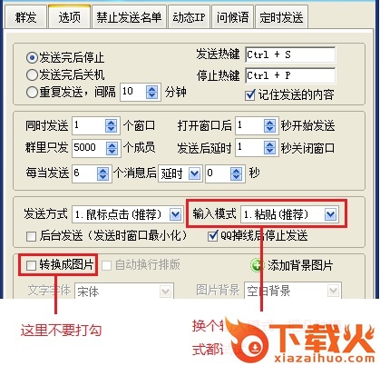 群发软件选项里面,修改输入模式,把几种模式都试试。