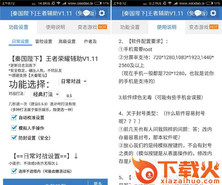 王者荣耀秦国陛下挂机辅助是一款游戏工具,针对于安卓用户的玩家,主要是帮助玩家实现无人值守可以挂机可以刷金币的功能,在你无论上班上学的时候可以实现王者荣耀挂机自动打刷金币的收获,一举两得喜欢的朋友快来腾牛网下载吧!