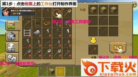 答:轻轻一点制作台,就会打开制作界面,当你身上有材料时,制作界面就会自动显示相关的工具。
